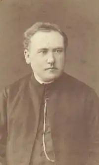 It is unclear where Vienažindys received primary education as there is no record of him attending a primary school.[6] In 1856, together with his brother Norbertas, he started high school education at the Panevėžys School for Nobles which was reorganized into the Panevėžys Gymnasium in 1858.[8] School administration Polonized Vienažindys' last name and therefore he is also known under Vienožinskis surname.[9] In 1861, both brothers decided to transfer to Varniai Priest Seminary.[10] After a year, Norbertas decided to pursue studies of mathematics at the Saint Petersburg University and left the seminary.[11] Antanas' studies were interrupted by the Uprising of 1863. Tsarist officials wanted to conscript him into the Imperial Russian Army, but he managed to bribe the officials.[12] When the uprising failed, Tsarist authorities implemented various Russification policies, including banning Lithuanian publications and moving the seminary from Varniai to Kaunas. Therefore, in February 1865, without having completed the full four years of studies, Vienožinskis was ordained as a priest.[13] The Tsarist authorities also deported Rožė Stauskaitė, Vienažindys' love interest, and her family to the Samara Governorate for participating in the uprising.[13]