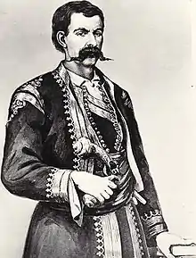 Antonije Bogićević, though born in Serbia, his ancestors came from Bosnia.[1][2] During the First Serbian Uprising, he joined the insurgents and worked in organizing the government and supplying the army. He was appointed duke in 1807 of Jadar defending this troubled area from Turkish incursions from Bosnia and Herzegovina. He fought the Turks in Krupanj, Rozaje, Rađevo Polje, and most often in Loznica, where several bloody battles were fought with the Bosnian Turkish army. He was wounded in one of those fights.