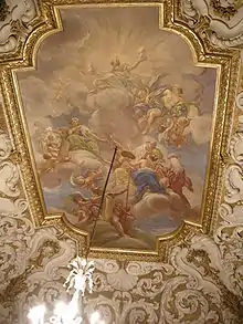 Born in Florence, Gabbiani first apprenticed with the Medici court portrait painter Justus Sustermans, then with the Florentine Vincenzo Dandini; subsequently moved to Rome in 1673, where he studied under the Medici-sponsored Accademia Fiorentina, led by Ciro Ferri and Ercole Ferrata.[1] This latter tutelage and his style has led Gabbiani to be described as one of the ‘’Cortoneschi’’ or followers of Pietro da Cortona, albeit second-generation. In 1678–79, he traveled to Venice, where he worked in the studio of Sebastiano Bombelli, returning to his native Florence in 1680, where he was often patronized by Grand Prince Ferdinando, the son of the Grand Duke Cosimo III. He painted the portrait of his patron surrounded by musicians (c. 1685; Pitti Palace). He frescoed the Apotheosis of Cosimo il Vecchio in the ceiling of the Sala da Pranzo in the Villa di Poggio a Caiano (1698).