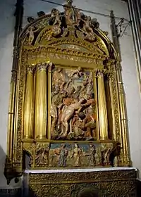 In 1621, he was engaged to create carvings and reliefs for the altarpiece of the parish church of St. Martin of Tours, except for the central relief with scene of San Martin sharing his cloak, which was undertaken by Esteban de Rueda. This altarpiece was completed in 1635, but destroyed by fire in 1854.