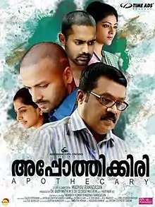 Apothecary is a 2014 Indian Malayalam-language medical thriller film directed by Madhav Ramadasan,[1][2][3] and produced by George Mathew and Baby Mathew under the banner of Arambankudiyil Cinemas. The film stars Suresh Gopi, Jayasurya, Asif Ali, Abhirami (after a hiatus of 10 years), Meera Nandan and Indrans.