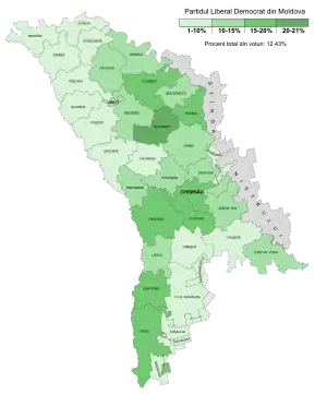 - Total votes won by the opposition parties (PL, PLDM, AMN) which passed the 6% electoral threshold by raion and municipality