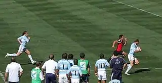 The Argentine rugby sevens team has had some success in the World Rugby Sevens Series, finishing third in 2003-04, and finishing among the top six teams in five out of six seasons from 2003-04 to 2008-09. Argentina won the USA Sevens tournament in 2004 and again in 2009. During its peak, the Argentine team was led by Santiago Gómez Cora, who is ranked all-time first in tries (230), fifth in points (1,178), and third in appearances (61).