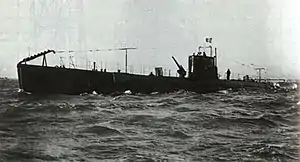 For surface running, the boats were powered by two 750-brake-horsepower (559 kW) diesel engines, each driving one propeller shaft. When submerged each propeller was driven by a 400-horsepower (298 kW) electric motor. They could reach 14 knots (26 km/h; 16 mph) on the surface and 8 knots (15 km/h; 9.2 mph) underwater.[1] On the surface, the Settembrini class had a range of 5,000 nautical miles (9,300 km; 5,800 mi) at 8 knots (15 km/h; 9.2 mph);[2] submerged, they had a range of 110 nmi (200 km; 130 mi) at 3 knots (5.6 km/h; 3.5 mph).[1]