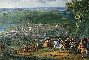After the end of the Thirty Years' War, a financially constrained Spanish government steadily reduced the size of the Army of Flanders; this trend continued after the end of the Franco-Spanish War that continued after the Peace of Westphalia in 1648.[71][3] Despite its decline in numbers and quality, the army remained "an opponent to be treated with respect" at least until the 1650s,[3] though it started to rely more on auxiliary forces such as the allied army of Louis, Grand Condé and a Royalist Army in Exile loyal to Charles II of England.[72] The Battle of Dunkirk in 1658, resulting in a defeat for the Army of Flanders at the hands of the French, produced a renewed peace.[71] From 1659, Madrid increasingly relied on the aid of Dutch and English troops to restrain Louis XIV's ambitions to annex the Spanish Netherlands (roughly present-day Belgium and Luxembourg), in which Spain showed declining interest after more than a century of war.[73]