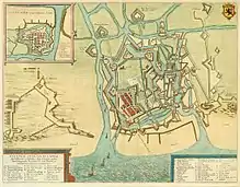 Farnese was ultimately removed as governor, being replaced by Peter Ernst I von Mansfeld-Vorderort in 1592 and Archduke Ernest of Austria in 1594. By the time Archduke Albert of Austria – the husband of Isabella of Spain was given custody of the Netherlands by the Spanish king in 1595, the Dutch north appeared to be an increasingly independent country, protected by the able military commander Maurice of Orange and his Dutch States Army. The Dutch continued to consolidate their control over various towns through a sequence of successful sieges, whilst the Army of Flanders saw itself increasingly pointed southwards, against France, being used as a strike force in 1590 and 1592, and fighting to take Doullens, Cambrai (1595) and Calais (1596).[51] The Army of Flanders also operated in Germany, capturing Neuss (1586), Bonn (1588) and Rheinberg (1590). Despite the failure of the Army to reoccupy the north, it continued to the end of the period as an effective fighting force, with its campaigns in 1605 and 1606 being notable for their 'vitality' and vigour.[52]