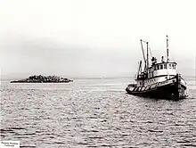 Arthur Foss was placed in service by the United States Navy in early 1942, renamed Dohasan and designated YT-335 (harbor tug) and later YTM-335 (district harbor tug, medium). The tug continued to tow supply barges between bases in the Hawaiian archipelago and even ventured as far as French Frigate Shoals, 500 miles (800 km) northwest of Oahu. Dohasan towed a large grab dredge to the Shoals on 8 August 1942 for construction of an emergency landing strip there, then remained as a tender to the dredge as it removed material from the lagoon and deposited it ashore to build up and form a runway. The tug returned to Hawaii after three months of this work, but afterward apparently spent a lot of time idle as navy crews were unfamiliar with operation of the main engine. After the war ended in September 1945, Dohasan continued in naval service until being stricken from the Navy List on 7 February 1945 and lay up at Honolulu through 1946. The tug was finally returned to Foss Launch & Tug Company ownership in fall 1947, and renamed Arthur Foss. To return the worn-out tug to the West Coast, CPNAB secured it in a floating drydock and had it towed to Los Angeles. During the stormy voyage, rough seas knocked Arthur Foss off its keel blocks, heavily damaging the hull. Upon arrival back in Tacoma, Foss began a comprehensive rehabilitation of the tug which occupied it until August 1948.[9][14][19][20]