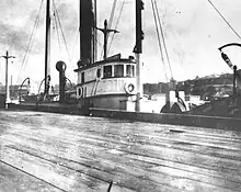 In 1898, caught up in the shipping boom caused by the Klondike Gold Rush, the OR & N leased Wallowa to the White Star Line to tow that company's large sidewheeler Yosemite north up the Inside Passage to St. Michael, Alaska. (That town was a major gateway to the gold fields via the Yukon River.) An early return voyage to Seattle from Skagway towing the bark Columbia nearly resulted in the loss of Wallowa on 1 November 1898. A strong gale drove the tug ashore near Mary Island, north of Portland Canal on the southeast Alaska coast. Wallowa was found to have suffered no damage and was successfully refloated on the next high tide, but three days later Columbia was stranded at the mouth of Portland Canal and became a total loss. Wallowa was able to safely endure the rest of the stormy voyage to Seattle.[4][8]