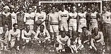 He started his career influenced by his father, playing for SC Germânia, a Brazilian football team composed of German immigrants. After playing with a succession of São Paulo club sides from 1910 onwards, Friedenreich made his debut with the national team in 1914 which was the first ever game Brazil played beating Exeter City 2–0. In the game, Friedenreich famously lost two of his front teeth due to a heavy slide tackle.[3] He played twenty-two internationals, including wins in the 1919 and 1922 editions of the South American Championship, scoring ten goals. During the 1919 edition he became the first ever football player to score a hat-trick in a major international tournament.[4] On Brazil's 1925 tour of Europe, he was feted as the King of Football. He was also the top scorer in the São Paulo League in 1912, 1914, 1917, 1918, 1919, 1921, 1927 and 1929.[5][6]