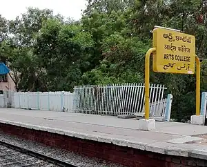 Arts College railway station is a railway station in Secunderabad, Telangana, India.[1] Localities like Osmania University, Habsiguda, Warasiguda and Adikmet are accessible from this station.