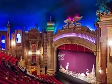 An atmospheric theatre is a type of movie palace design which was popular in the late 1920s. Atmospheric theatres were designed and decorated to evoke the feeling of a particular time and place for patrons, through the use of projectors, architectural elements and ornamentation that evoked a sense of being outdoors. This was intended to make the patron a more active participant in the setting.[1]