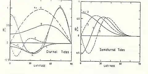 and doing some manipulations[7] yields expressions for the latitudinal and vertical structure of the tides.