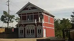 It includes elements of Stick/Eastlake and Queen Anne styles.[1]