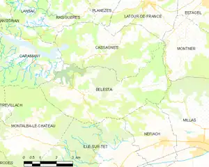 Map of Bélesta and its surrounding communes