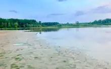 Part of the Jordan Lake State Recreation Area,[1] the reservoir covers 13,940 acres (5,640 ha) with a shoreline of 180 miles (290 km) at its standard water level of 216 feet (66 m) above sea level. It was developed as part of a flood control project prompted by a particularly damaging tropical storm that hit the region downstream in September 1945. Constructed at an original cost of US$146,300,000, it is owned and operated by the United States Army Corps of Engineers, which dammed and flooded the Haw River and New Hope River between 1973 and 1983.