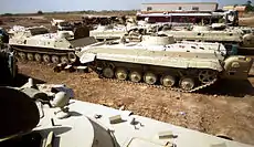 FAPLA deployed BMP-1s in small numbers during an ill-fated 1987 offensive against the National Union for the Total Independence of Angola (UNITA) and its South African allies, which initiated the Battle of Cuito Cuanavale.[24] South African troops subsequently captured 2 FAPLA BMP-1s in intact condition and destroyed a third.[24][25] Cuba later deployed a number of its own BMP-1s to southern Angola during a 1988 offensive against South African positions near the border.[21] In 1989, FAPLA renewed its offensive against UNITA during Operation Final Assault, deploying BMP-mounted mechanized infantry for the first time in large numbers.[26] The offensive was abandoned after the units involved suffered heavy casualties; UNITA claimed to have destroyed or captured 200 FAPLA BMP-1s.[26] In 1993, FAPLA ordered almost 300 new BMP-1s from Belarus, Bulgaria, and Russia to replace those lost in the civil war.[27] By 1999, UNITA had captured enough BMP-1s and BMP-2s to integrate them into a single mechanized unit of battalion strength.[26] However, UNITA lacked the resources to keep the vehicles well maintained, and suffered from an erratic supply of diesel fuel which made prolonged mechanized operations unsustainable.[26] UNITA's mechanized capability was destroyed after several pitched battles with the superior FAPLA forces in late 1999.[28]