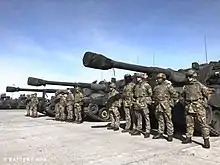 In 1996, the Battery deployed on Op RESOLUTE to Bosnia as part of the NATO lead IFOR. Initially, B Battery were to be based in Baraci but due to reductions in theatre, it was decided that three gun batteries were not required at that location. The Battery was teamed up with L (Nery) Battery to form B/L Battery and was based in Glamoc. From here, the Battery conducted deployments with its Troop of guns through Multi National Division South West. After a successful tour, B Battery returned to the UK in January 1997. Following a period of leave, B Battery then started pre-BATUS training, again joining forces with L Battery to support 1st RWF Battle Group. Just prior to deploying, the Battery took the lead in supplying manpower to the Royal Tournament at Earls Court, London, the largest military tattoo in the world at the time. This had members of the Battery assisting in a variety of jobs from taking part in the show to the necessary backroom work. 1988 saw B Battery deploy again to Glamoc, Bosnia, this time as part of SFOR. When the Battery returned in January, 1999, little did they realise that by June the same year the TAC Group would find itself spearheading the advance of the NATO force into Kosovo. The TAC Group saw at first hand the destruction that the Serbs had tried to inflict on the local population during the conflict. The TAC Group returned to Tidworth in September. In 2000, the Battery deployed on Exercise GRAND PRIX in Kenya to support the Argyll and Sutherland Highlanders. Here, the Battery was equipped with the 105mm Light Gun. The Battery had an extremely good exercise and conducted some great infantry training as well as firing the guns. On return from Kenya, the Battery made it to the final of the RA Inter-Battery football against 132 Bty and won 6–0. Once again, the Balkans reared its head and this time Sahagun Troop deployed with L/N Bty to Kosovo and Downman's Troop to Sanski Most with Chestnut Troop. 2001 saw B Battery training up to support the King's Royal Hussars on Exercise IRON ANVIL in BATUS as part of 19 Regiment RA in support of 12th Mechanised Brigade. On return to the UK, the Battery commenced a build-up to deploy back to the Balkans as the UK Artillery Battery based in Sipovo. B Battery was the last Gunner unit, in role, in the Balkans. Back in the UK, the Battery immediately re-rolled to provide cover for the National Fireman's strike. The Regiment deployed to Cheshire and the Battery initially covered Warrington, Runcorn and Widnes. This commitment lasted intermittently between October 2002 and March 2003. The Battery also conducted a Brigade level exercise in BATUS with the Regiment before being warned off for Operation TELIC 4.[2]