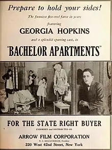 Bachelor Apartments is a 1921 American silent comedy film directed by Johnnie Walker.[1] It was distributed by the Arrow Film Corporation.