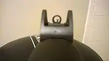 Aperture sights, also known as "peep sights", range from the "ghost ring" sight, whose thin ring blurs to near invisibility (hence "ghost"), to target aperture sights that use large disks or other occluders with pinhole-sized apertures. In general, the thicker the ring, the more precise the sight, and the thinner the ring, the faster the sight.[2]