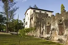 Bagamoyo Historic Town or Bagamoyo Stone Town (Mji wa Kale wa Bagamoyo au Mji Mkongwe wa Bagamoyo, In Swahili), is the historic section of Bagamoyo town in Bagamoyo District of Pwani Region. Due to its historic significance spanning centuries and empires, Old Bagamoyo is a National Historic Site of Tanzania. The settlement was first inhabited in the 8th century as a Zaramo village and then a Swahili stone settlement, satellite to Kaole.[2] One of the most significant trading hubs on the coast of East Africa, Bagamoyo served as the last halt for ivory caravans making their way on foot from Lake Tanganyika to Zanzibar.