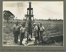 Preliminary supports for the radio transmitter mast at Bald Hills, 1942