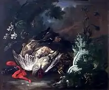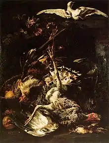 Baldassarre De Caro (Naples, 1689- 1750) was an Italian painter of still lifes, mainly of hunted game, but also of flowers. The mood of his paintings is often morbid.