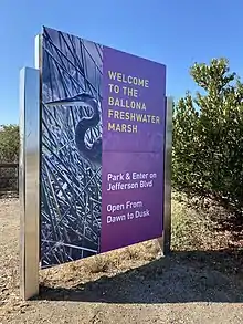 Ballona Freshwater Marsh (BFM) is a 26.1-acre (106,000 m2) marsh fed by water from the nearby Bluff Creek, a remnant of Centinela Creek. The freshwater marsh, located on the corner of Lincoln and Jefferson, was built in 2003 by the corporation that was building the adjacent Playa Vista neighborhood.[13]