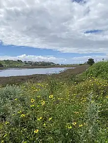 Common introduced species in the wetlands are crown daisy, Canary Island palm, ice plant, pampas grass, castor bean, ripgut brome, myoporum, wild mustard and wild radish.[18]