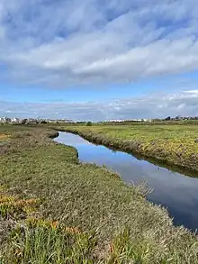 Wetland flora includes pickleweed, alkali heath, saltgrass, salt marsh dodder, arrowgrass, glasswort, and upland species like coyote bush and goldenbush.[17]