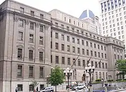 In 1985, this federal courthouse was rededicated in honor of Baltimore's noted national civil rights leader, Clarence M. Mitchell Jr. (1911–1984).[8] An assessment and renovation study of the Baltimore Courthouse was presented in 1989. It took until 2000 for funding and plans to accomplish substantial exterior improvements.[9] The study by architectural firm Richter Cornbrooks Gribble concluded that the building should be re-used, rather than abandoned in favor of new facilities; renovation proceeded under architect Kann & Associates. Despite criticism of the first renovation, the architects recognized that the 1950 reconfiguration of the courthouse "probably prevented it from being demolished altogether." in the 1950s.[10] Studies continued into 2002, when architects Richter Cornbrooks Gribble Inc. of Baltimore and Ricci Associates of New York suggested a remodeling that would return the interior formal spaces to a configuration closer to the pre-1940s arrangement.[11]
