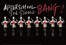 "Bang!" is a song recorded by the South Korean girl group After School.[1] This song marked the first appearance of the group's eighth member, Lizzy.[1] It was later released in Japanese for the group's Japan debut. The song was released on August 17, 2011, in 3 editions. The Japanese version does not include former member Bekah, who left the group to become a designer after the promotions for the group's first Korean album, 'Virgin,' were completed.