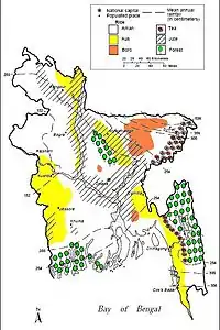 - 1 2 3 4 5 6 7 8 "Background Note: Bangladesh". Bureau of South and Central Asian Affairs. March 2008. Retrieved 11 June 2008. This article incorporates text from this source, which is in the public domain.