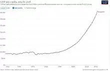 The following table shows the main economic indicators in 1980–2021 (with IMF staff estimates in 2022–2027).[124] Inflation below 5% is in green. The annual unemployment rate is extracted from the World Bank, although the International Monetary Fund find them unreliable.[125]