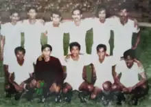 Before Independence in 1971, the 30s and 40s saw the football rivalry between Kolkata and Dhaka started under DSA (Dhaka Sporting Association), which was mainly created to develop players in the east.[3] The majority of the team was made out of students from Dhaka University, when they defeated Islington Corinthians 1–0, on 22 November 1937 .[4] During the liberation war in 1971, football was the way to create international awareness about the war of independence. The Swadhin Bangla Football Team was established which played 16 matches in India and was officially received by the BFF in 2009. Zakaria Pintoo, who was the captain of that team and the first person to wave Bangladesh's flag in a foreign land.[5][6]