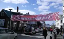 With the building of a bridge over Lækinn, the stream running from Tjörnin along what is now Lækjargata, in 1828, Bankarstræti, along with the contiguous Austurstræti and Laugavegur, became some of the most important streets in Reykjavík.[1] The street saw Reykjavík's first street light, an oil-lamp beside Lækjartorg. Since the earlier twentieth century, the street has been one-way. Since 2012, Bankastræti, along with Laugarvegur and Skólavörðustígur, has been pedestrianised during the summer as part of the 'sumar götur eru sumargötur' ('some streets are summerstreets') scheme.[2]