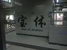 Bao'an Stadium station (simplified Chinese: 宝体站; traditional Chinese: 寶體站; pinyin: Bāotǐ Zhàn; Jyutping: Bou2 Tai2 Zaam6) is a station on Line 1 of the Shenzhen Metro in Shenzhen, Guangdong Province, China. The station opened on 15 June 2011. The Chinese name 宝体 is short for 宝安体育馆 (Bao'an Stadium, Chinese: 寶安體育館; Jyutping: Bou2 On1 Tai2 Juk6 Gun2). The station serves the nearby Bao'an Stadium.