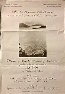 - ↑ Patricia M. Gathercole (1999), "Reviewed Work: Patmos by Rodolfo Di Biasio, Barbara Carle", World Literature Today, 73: 131, JSTOR 40154526