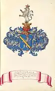 The Barbo family originated in Veneto, later moving to Inner Austria, especially Carniola (present-day Slovenia). Although first documented in the 13th century, they claimed descent from Roman Emperor Claudius. In 1547 the family settled in Kožljak (Waxenstein, in German) in Habsburg March of Istria. They were elevated to the rank of Barons in 1622, and to the rank of Imperial Count in 1674 by the Emperor Leopold II.[1] They held the titles barons of Guteneck, Pass and Zobelsberg, lords of Schlüsselstein, Kreussenbach and Dragomel.[2]