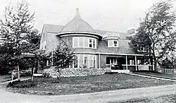 "Barncastle", also known as Kline Cottage, is a historic house, now an inn and restaurant, at 125 South Street in Blue Hill, Maine, United States. It is one of the earliest and largest summer cottages in Blue Hill, and remains one of its most visible and idiosyncratic. Listed on the National Register of Historic Places and originally called "Ideal Lodge" after the Boston Ideal Opera Company founded by its builder, Effie Hinckley Ober, the house was finished in 1884 to a design by George Asa Clough, Blue Hill native and noted Boston architect, Effie's childhood friend.