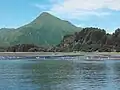 Barometer Mountain is located six miles (9.7 km) southwest of Kodiak on the northeast coast of Kodiak Island.[4] It ranks as the 10th-highest peak on the island,[1] and it is considered Kodiak's most popular mountain.[5] Precipitation runoff from the mountain drains north into Buskin Lake, east to the Buskin River, and south to Devils Creek. Topographic relief is significant as the summit rises 2,200 feet (671 meters) above Devils Creek in 0.85 miles (1.37 km) and the summit is one mile (1.6 km) from the end of a runway at Kodiak Airport. On November 8, 1988, an F-15C from the 21st Tactical Fighter Wing crashed in low visibility into Barometer Mountain and the pilot was killed.[6] The mountain's descriptive name was applied in 1867 by the United States Coast and Geodetic Survey because the behavior of fog and clouds forming on the mountain was said to be predictive of approaching weather.[4][7] The toponym has been officially adopted by the United States Board on Geographic Names.[4]