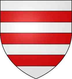 Coat of arms of Baron Multon of Egremont Argent, three bars Gules..