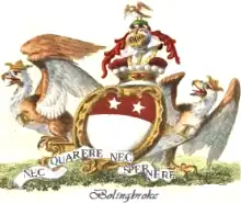 Viscount Bolingbroke[lower-alpha 1] is a current title in the Peerage of Great Britain created in 1712 for Henry St John. He was simultaneously made Baron St John, of Lydiard Tregoze in the County of Wilts. Since 1751, the titles are merged with the titles of Viscount St John and Baron St John in the same peerage.