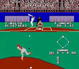 The object of the game is to win an exhibition game of baseball, as the game does not have a season play option. After an exhibition game is completed, the player is given a numerical score based thirteen categories, including batting, errors, and spectacular plays. The score ranges from 1 to 100, but a player can score over 100 points by earning bonus points for jumping and diving catches.