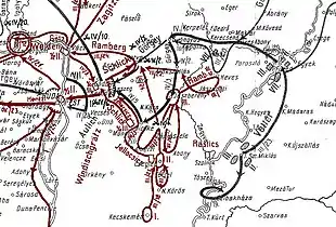 On 2 April, the preliminary fighting began when the VII Corps clashed with the Austrian III Corps at the Battle of Hatvan. Schlik had wanted to obtain information for Windisch-Grätz about the positions and numbers of the Hungarian army and had moved towards Hatvan but was defeated there by the VII Corps and forced to withdraw without accomplishing his purpose. Windisch-Grätz assumed that Schlik had come up against the main Hungarian army and remained ignorant of the true whereabouts of the Hungarian army.[8] The other three Hungarian corps moved south-west as planned and on 4 April met and defeated the Austrian I Corps at the Battle of Tápióbicske. Although Klapka's attack at Tápióbicske had revealed where the Hungarian troops really were, Görgei decided to continue with the plan.[9]
