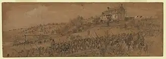 ![]() Artillery bombardment with Warren's troops awaiting attack (from Harper's Weekly) | |||||||
