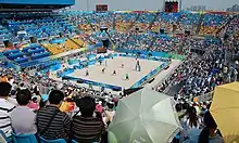 The Chaoyang Park Beach Themed Park (simplified Chinese: 朝阳公园沙滩主题乐园; traditional Chinese: 朝陽公園沙灘主题樂園; pinyin: Cháoyáng Gōngyuán Shātān Zhu3ti2 Le4yuan2), known as the Chaoyang Park Beach Volleyball Ground (simplified Chinese: 朝阳公园沙滩排球场; traditional Chinese: 朝陽公園沙灘排球場; pinyin: Cháoyáng Gōngyuán Shātān Páiqiú Chǎng) during the 2008 Olympic Games, is a swimming, samba, African dance, hula and carnival place in Chaoyang Park that used to be one of 9 temporary venues used for the 2008 Summer Olympics. It was built on the site of the ex-Beijing Gas Appliance Factory (Chinese: 北京煤气用具厂) but now a part of the park. The ground was used for the beach volleyball matches.