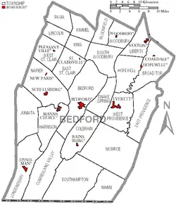 - ↑ "Welcome to Bedford County, PA". Bedford County Commissioner's Office. Retrieved April 15, 2021.