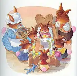 Elsewhere in Europe, the book series is called La Familia Pasaflor (Spain), A Família Passiflore (Portugal), La Famiglia Passiflora (Italy),[6] De Familie Passiebloem (Netherlands),[7] Familie Löwenzahn (Germany), Wesołe przygody królików (Poland), "Жили-были кролики" (Russia) [8] and Tappancsmesék (Hungary).[9]