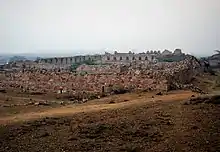 The fort was also known as ‘Muhammadabad’, but inferred as a latter-day development.[4] The two gates on the southeast and southwest of Adilabad fort had chambers at the lower level while the east and west gates had grain bins and courtyards at the upper floors. The fortifications built, linking with the other two city walls, was 12 m (39.4 ft) in thickness and extended to a length of 8 km (5.0 mi). Another smaller fortress, called the Nai-ka-Kot (literally "Barber's fortress") was also built at a distance of about 700 m (2,296.6 ft) from Adilabad, with the citadel and army camps, which are now seen only in ruins.[11]