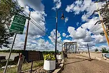 Completed in 1926 at a cost of $305,000, the Bell Street Bridge crosses the Yellowstone River in Glendive, Montana. Designed by the Montana Highway Commission and built by contractor Boomer, McGuire & Blakesley, the 1,352 feet (412 m) long, 20 feet (6.1 m) wide bridge consists of six Warren through truss spans, each roughly 219 feet (67 m) long, and a concrete approach span about 38 feet (12 m) long. It was listed on the National Register of Historic Places in 1988.[2] At one time the main highway bridge over the river, Montana DOT rehabilitated and converted it for pedestrian use in 1992 when the bridge on the I-94 Business Loop was built 300’ to the north.[3]